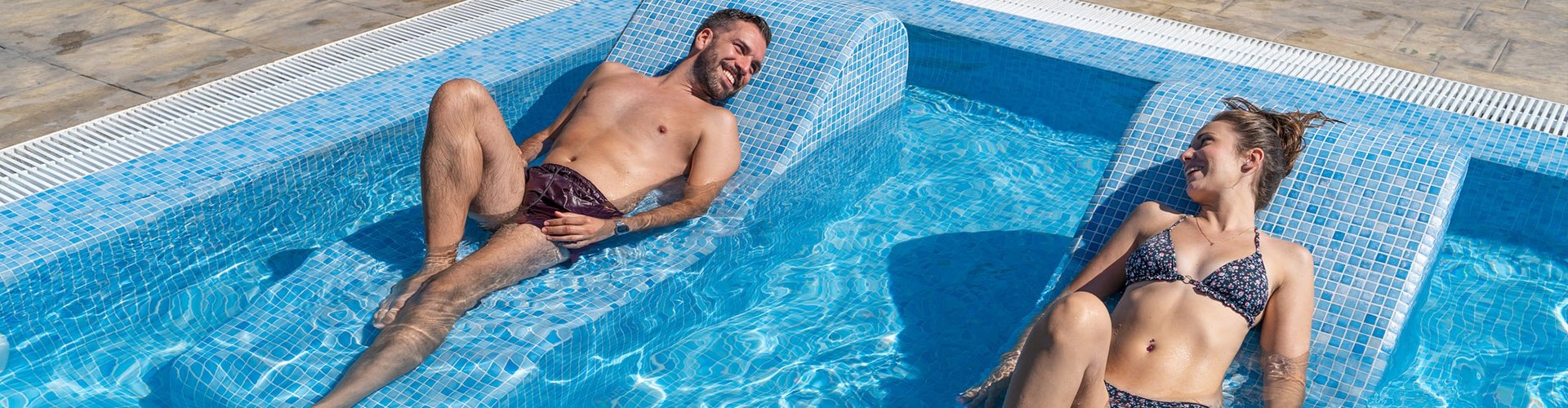 Sumérgete en Magic Aqua Experience™. Impresionante parque acuático con 6 toboganes*: multilane, family boat, bowl slide, speed hole, pendulum y kamikaze; splash infantil para los pequeños, Swim - Up Bar y hamacas en zona solarium.